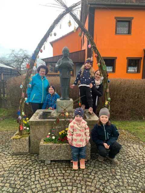Damit ist der Karpfenbub-Brunnen rechtzeitig zum Osterfest geschmückt.
